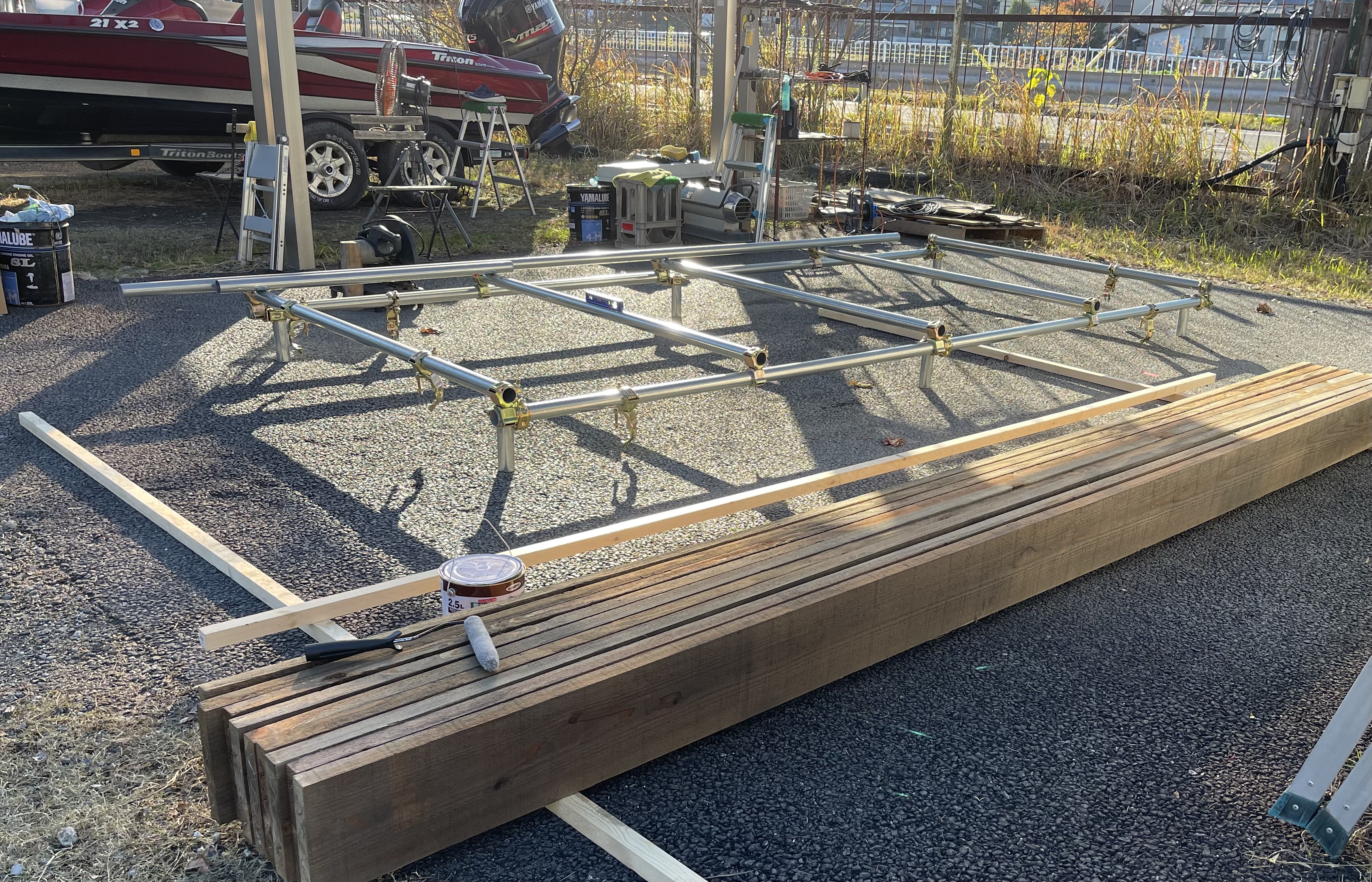 内部増し締めの際カーペット等が濡れていたので、作業中に天日干しさせて頂きました!