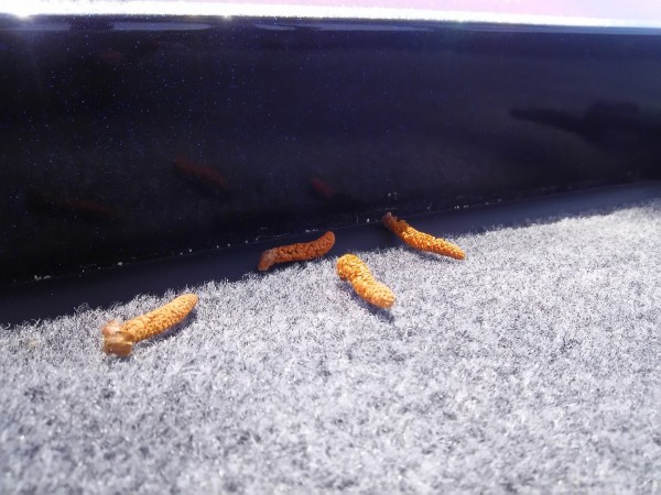 ボートを止めているところに大きい松の木があるんですがこの季節になると芋虫のような物がたくさん降ってきます、