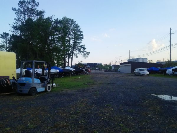 今日一日、安全のため移動していたボートを元に戻し場内に散乱した松の葉や枝を除去しました、